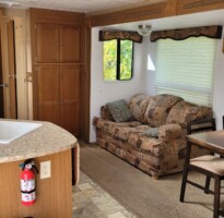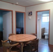 Guests stay in one of our seven modern, fully equipped cabins that surround the main lodge and look out over the lake. The cabins are heated and have refrigerators, clean bathrooms, and comfortable beds; some come with full kitchens.