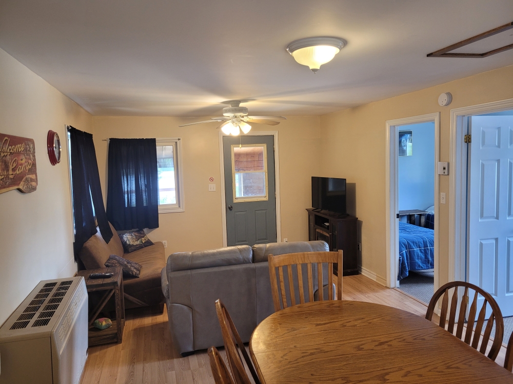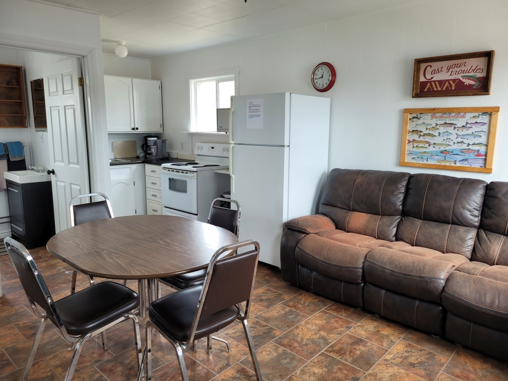 Guests stay in one of our seven modern, fully equipped cabins that surround the main lodge and look out over the lake. The cabins are heated and have refrigerators, clean bathrooms, and comfortable beds; some come with full kitchens.